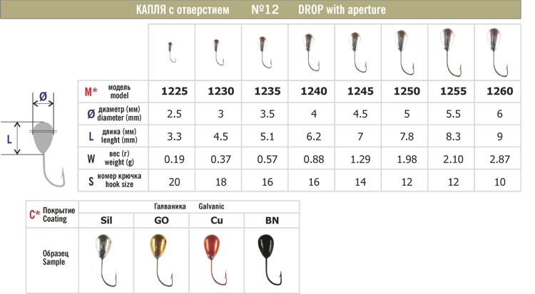 Мормышка КАПЛЯ 12 с отверстием (упак. 10 шт.)