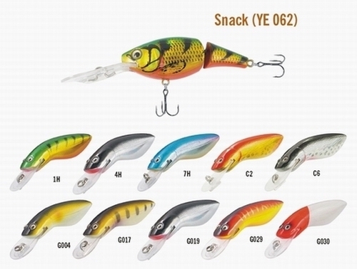 Snack - составной акустический воблер с активной рыскающей игрой. Одна из самых популярных моделей для ловли щуки и окуня. Оптимально подходит для троллинга. Плавающая модель, заглубление от 1,5-2,8 м.